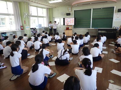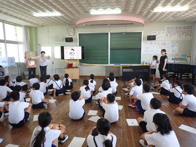 令和7年7月15日(火)、5・6年生は、「熊本ヤクルト株式会社」による出前授業「おなか元気教室」に参加しました。