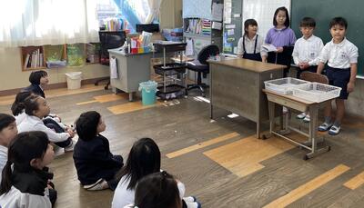 それぞれ、PowerPointでスライドを作ったり、絵をかいたりして、分かりやすく説明してくれました。クイズコーナーでは、学習したことを楽しいクイズにまとめてあり、1年生も喜んで答えていました。
