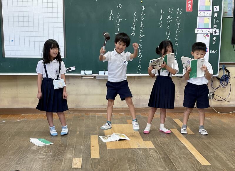 7月12日(水)の国語の時間、「おむすびころりん」の発表会をしました。