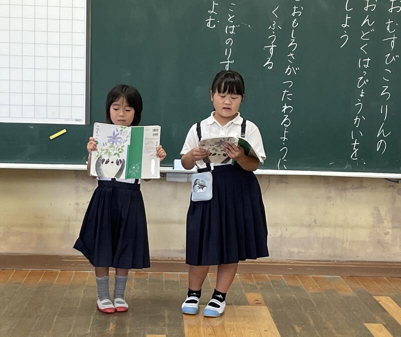 場面の様子が伝わるように、声の出し方をくふうしたり、動作化したり、それぞれの班でくふうが見られました。発表後の感想交流でも、他の班のよいところをたくさん見つけることができました。