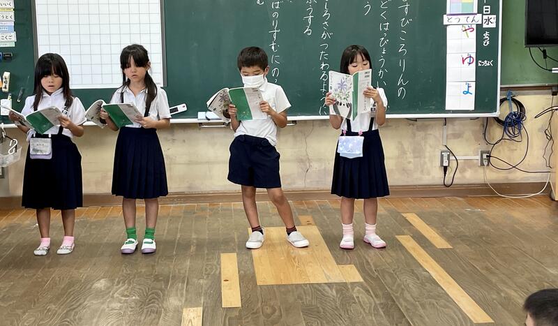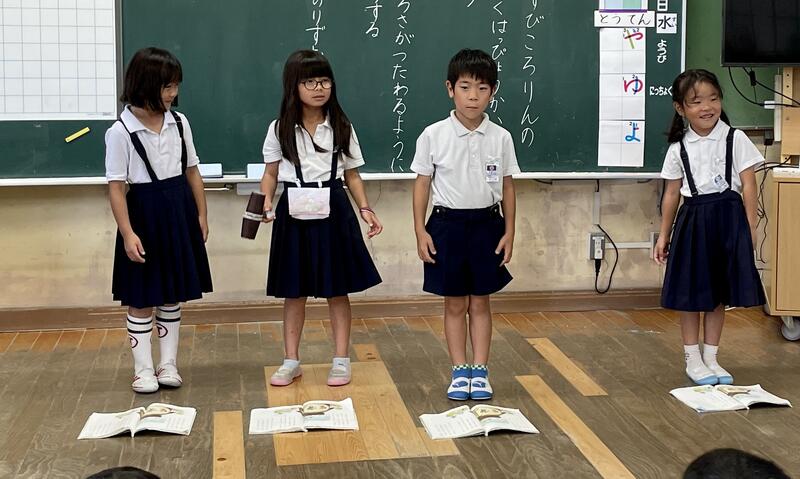 7月12日(水)の国語の時間、「おむすびころりん」の発表会をしました。