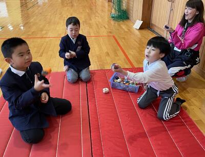あいにくの天気で運動場は使えず、体育館のみでの活動になりましたが、子どもたちは元気いっぱい、それぞれの遊びを楽しみました。