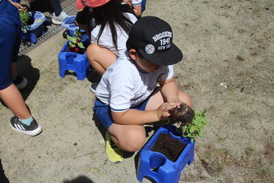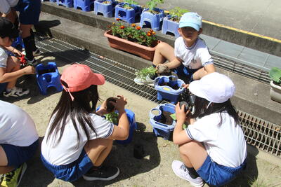 地域の方からいただいた花をプランターに植えました。