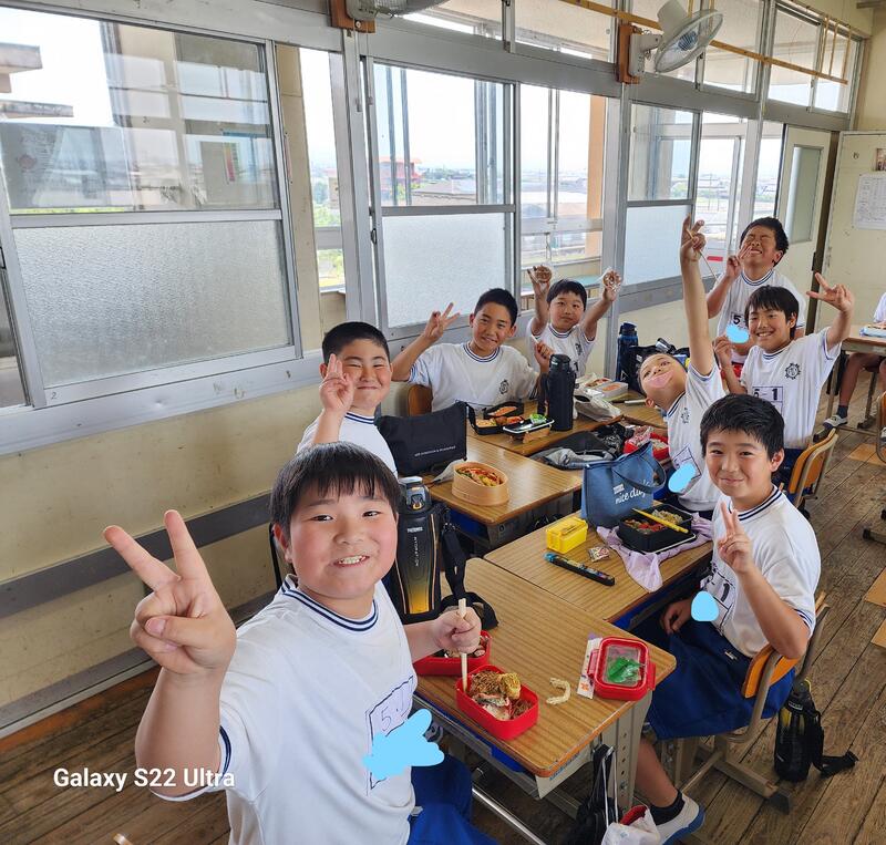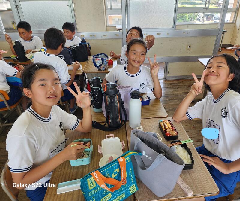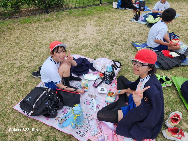 運動会前日のお弁当を食べている様子です。元気もりもり準備、係打ち合わせを頑張りました。