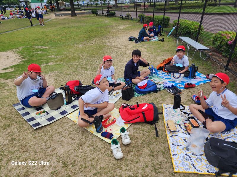 先月26日(金)歓迎遠足に行ってきました。6年生が中心に縦割り班遊びや、貨物列車などたくさんの学年と交流し楽しみました。遠足の活動の中で、何回も「早く弁当を食べたい。」ととても楽しみにしている子供たちの声を聞きました。保護者の皆様、お忙しい中弁当の準備ありがとうございました。週末の日記では、「親の弁当を見て、愛を感じました。」とうれしさを表現している子供もいました。これから運動会の練習が始まりますが、体育服の準備などご支援よろしくお願いします。