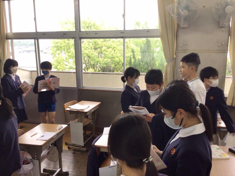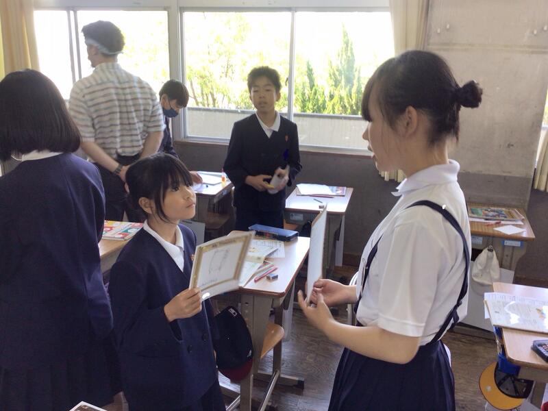 以下の写真は、スピーキングテスト前に、現段階での考えている内容を互いにスピーチし、アドバイスをし合っているところです。発音の仕方や、正しい言い方を教えたりする姿が見られました。分からない言い方は、担任やALTに聞いていました。来週月曜日がテストです。どんな紹介をしてくれるのか楽しみです。
