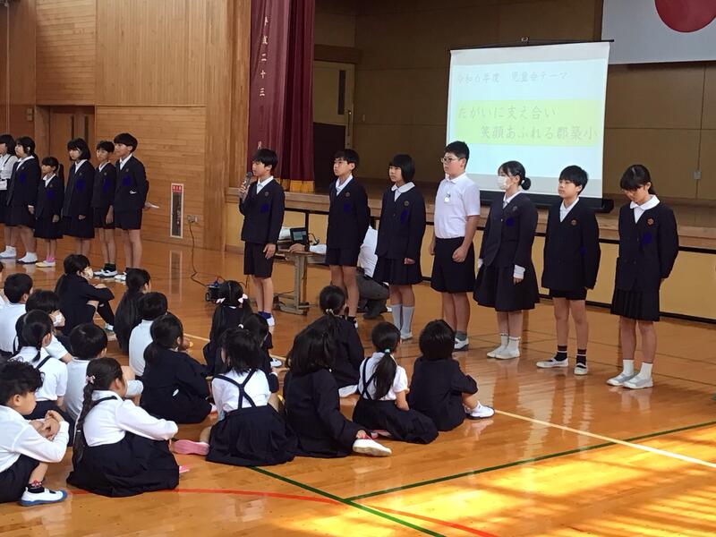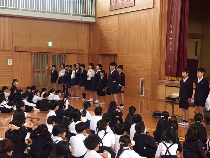 赤団・白団ともに、応援リーダーを決定し、準備を進めてきました。来週から、運動会練習が始まり、応援練習も予定しています。2日(木)の児童集会では、応援リーダーのメンバー、運動会スローガン「赤白団結 最高の思い出になる運動会」を発表しました。
