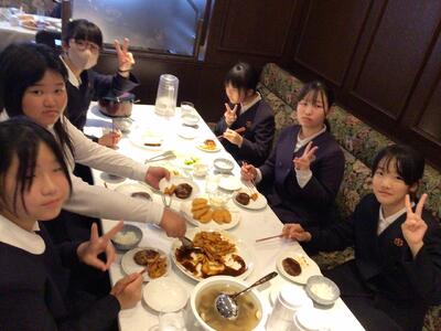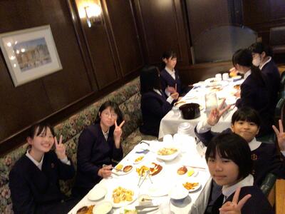 修学旅行の一行は、JALシティ長崎にて昼食をとりました。メニューは、・・・画像の通りです。みんな笑顔です。
