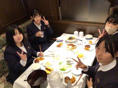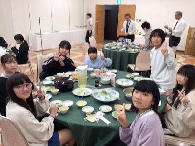 修学旅行の一行は、JALシティ長崎にて昼食をとりました。メニューは、・・・画像の通りです。みんな笑顔です。