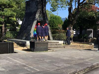 修学旅行の一行は、平和祈念公園から山里小学校、如己堂、浦上天主堂などボランティアガイドさんの説明を聞きながらフィールドワークを行い、長崎原爆資料館を見学しました。修学旅行での学習のヤマ場を迎えました。みんなの学習態度が素晴らしいです。