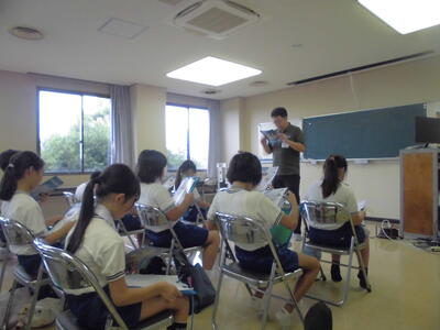 曇り空ではありましたが、30分ほど歩いてみんな疲れていたと思いますが、しっかりお話を聞き、