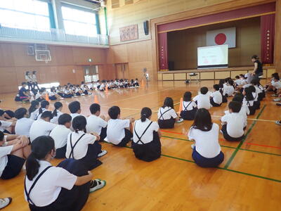 令和7年7月2日(水)、仲間づくり委員会の子供たちの企画・運営で(全校での)人権集会がありました。