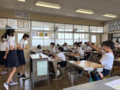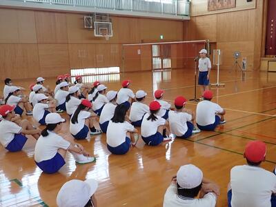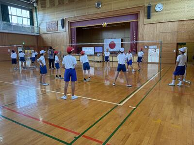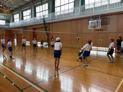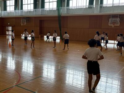 毎時間終了時に学習を振り返り、課題に応じて次の時間の内容を決めています!体育の学習では、一人一人が体を動かす楽しさを実感しながら運動に親しむ態度を育成することを目標に授業づくりに取り組んでいます。見学の児童も得点の集計や声掛け、応援など積極的に行動しておりとても感心します。