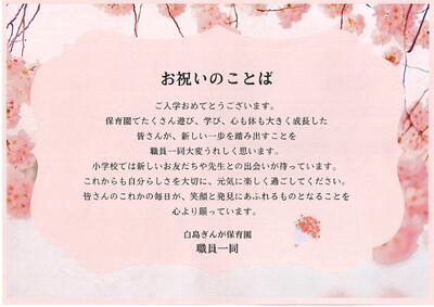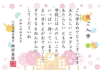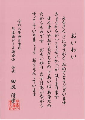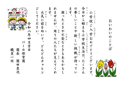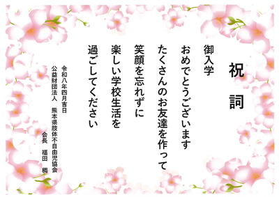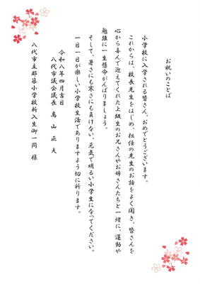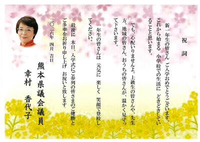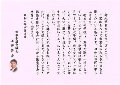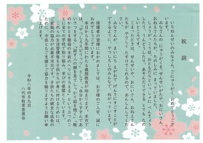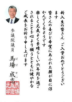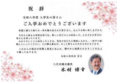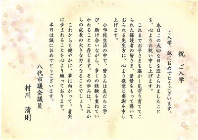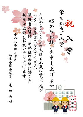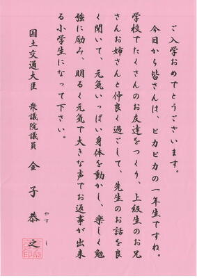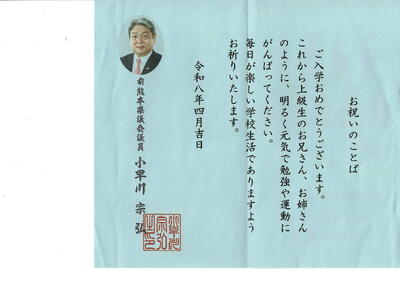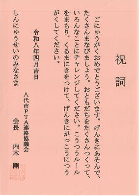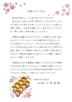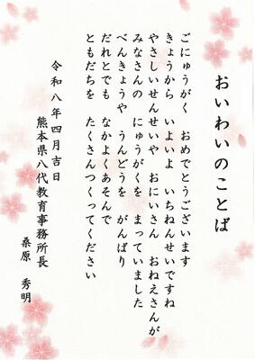 「令和8年度入学式」に際し、新入児童に向けて、心温まるご祝辞を多数いただきました。