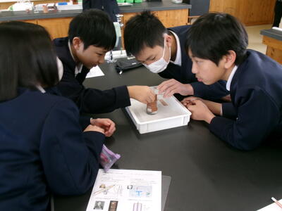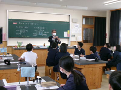 今年も、6年生対象に玉陵中学校の授業体験を実施していただきました。卒業した3年生教室と理科室を使って授業が行われました。3年生教室では、数学の授業を熊澤先生に、理科室では、理科の授業を相浦先生にしていただきました。