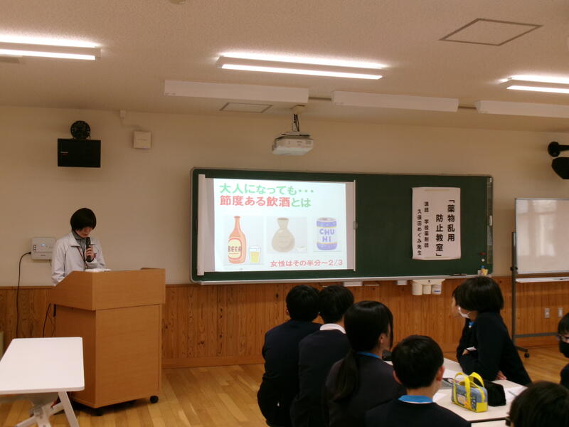 今年度も学校薬剤師の久保田めぐみ先生による「薬物乱用教室」を実施しました。知識として学び、自分で判断し、行動できる力を身につける学びの時間にしたと考え、取り組んでいます。