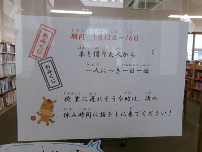 1月は、くじ引き、2月は、豆まきと本を読むことでのお楽しみをたくさん工夫されています。朝から、廊下に待っている児童もいます。毎朝の日課として、図書室に足を運ぶ子どもたちが増えています。1月時点で、昨年の貸し出し数を3500冊も上回っています。読むことで、読解力もついていきます。日々の積み重ねで、心も豊かに育って欲しいと願うところです。