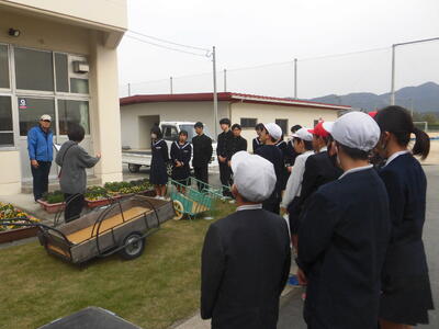 12月6日(金)小中合同での「フラワープロジェクト」を実施しました。今回は、中学校が「新玉名駅」へ、小学校が「県北病院」へお花を届けました。「たくさんの方がお花を見て、元気になってもらえるように」との思いで実施しました。