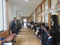 今日、第3回学校運営協議会がありました。はじめに小中学校の授業の様子を参観していただき、その後、学校評価や今年度の反省、次年度に向けての取組ついて協議を行いました。運営委員の皆様から子どもたちの落ち着いた学習の様子にお褒めの言葉をいただきました。また、1年生からはお礼のお手紙、6年生からは歌のプレゼント、中学校生徒会役員からはフォトアルバムのプレゼントがありました。委員の皆さんがとても感動されていました。
