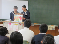 今日、朝活動の時間に中学生が小学校に読み聞かせに来て、各教室で紙芝居を読んでくれました。昼休みの時間などを使い練習をしていたということで、表現豊かに身振り手振りを交えての読み聞かせでした。聞いていた子どもたちも思わず笑い出していました。このような企画ができるのも玉陵小中学校の素晴らしさだと思います。