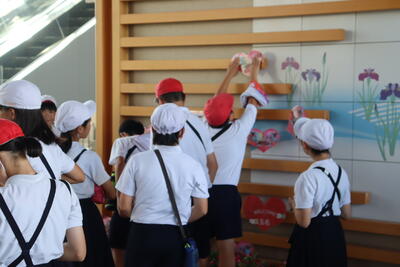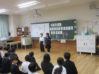午後から新入生体験入学がありました。1年生の子どもたちが、来年度入学予定の子どもたちと交流活動を行いました。小学校に入学してできるようになったことの発表をしたりプレゼントを渡したりしました。とても楽しい時間になりました。