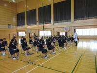 今日は中学校の卒業式でした。小学校でも6年生が卒業式に向けて学年練習を頑張っています。今日は入場の練習を中心に行っていました。