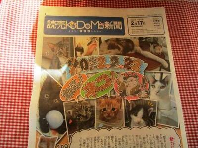 図書室前の廊下には猫の日特集の子供新聞が。みんな喜んで紙面をめくっていました。