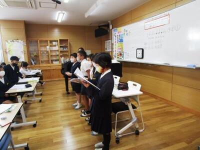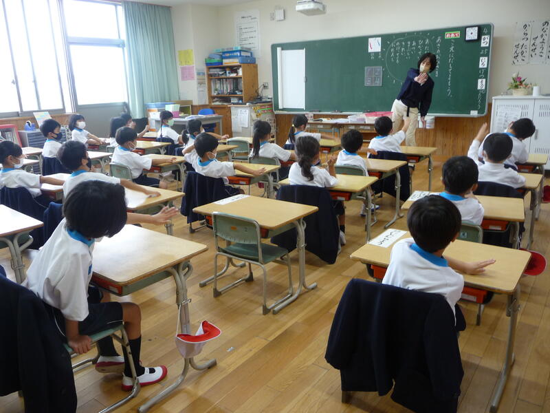 音楽の時間に、1年生は玉陵小学校の校歌を歌っていました。入学して初めて聞く校歌ですが、少しずつメロディーや歌詞も覚えてきているようです。