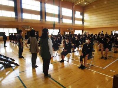 特別支援学級のお友達の小中合同お別れ会が行われました。他の中学校区では軒並み中止ですが、玉陵学園はできることに感謝!