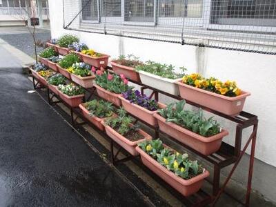 【学校運営協議会の方による花の入れ替え準備】午前中、学校運営協議会の方にお世話になり、冬・春の花、パンジーやノースポール、リビングストーンデージーなどを、プランターから抜いて土を返しました。玉陵小・中学校は、校舎の周りにいつも綺麗な花があり、子どもたち、職員、来校される方々の目を楽しませてくれています。これも、このように苗植え、水やり、植え替えなど、こまめに花のお世話をしていただいているからこそです。いつもありがとうございます。