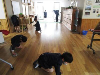 今日は公立高校後期選抜の1日目。留守番組の3年生は学校の隅々をきれいにしてくれていました