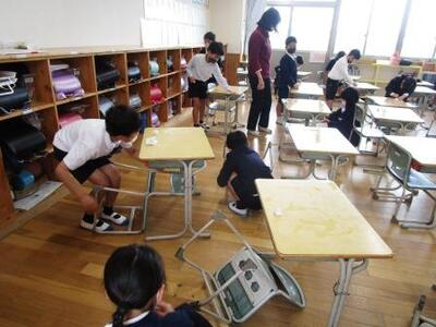学級活動の時間に、「そうじのしかた」について学習していました。ほうきの使い方や雑巾での拭き方について、実際にやりながら身に付けていました。教室や廊下がもっと綺麗になりますね。