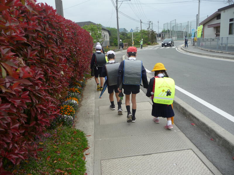 4月27日(水)は、家庭訪問4日目です。登校時は雨もぱらついていましたが、学校を出るころにはすっかり雨も止み、子どもたちは元気に下校しました。