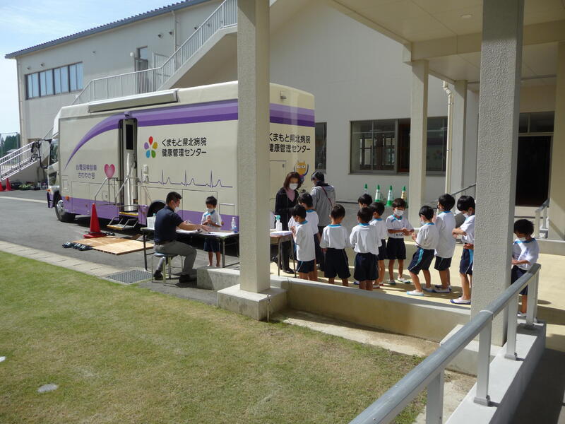 1年生と4年生は、心臓検診(心電図)を実施しました。特に、1年生は検診車に乗ることも初めてということで緊張した様子でした。小学校においては、1年生時と4年生時に心臓の検診を行うことが義務づけられています。