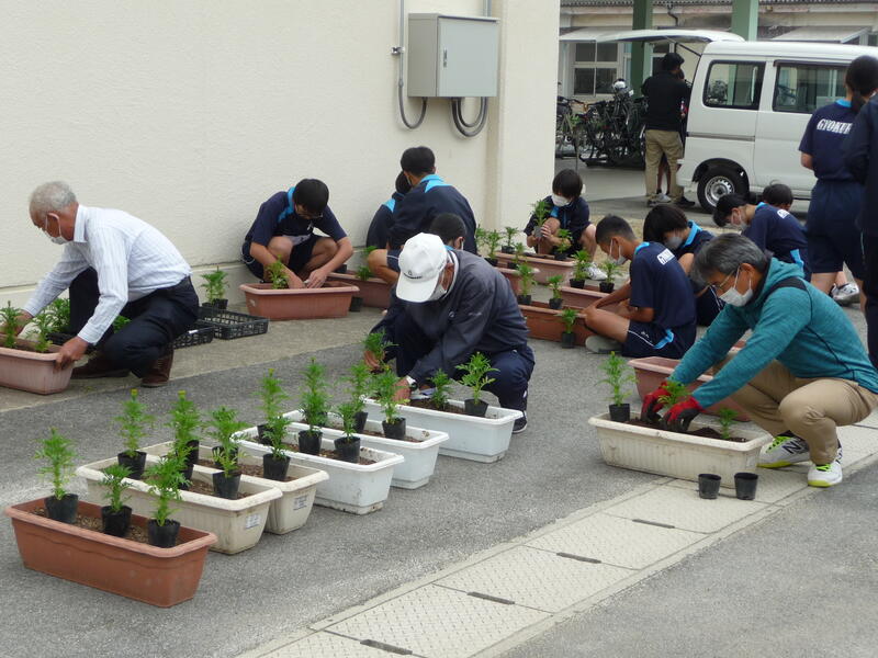 学校運営協議会の方をはじめ、地域の方々、保護者に来ていただき、正門付近の花壇の整備や玄関前の花の手入れ、マリーゴールドの苗植えを行いました。小学生、中学生、先生、地域の方々で一緒に行えるのは本当に有り難いです。