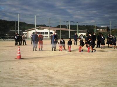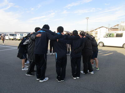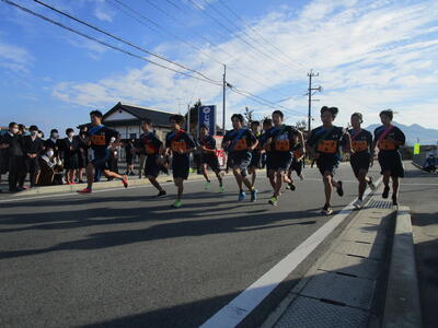 授業では、1・2年合同で持久走大会の練習!まず2年生がスタート!