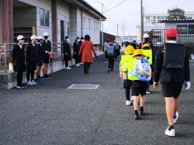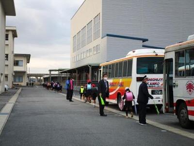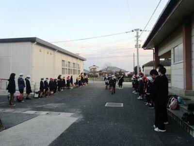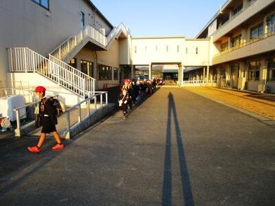 今朝は氷点下の冷え込みでしたが、1年生は登校班と一緒に元気に登校してきました。