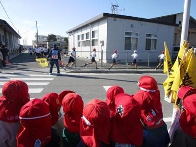 見守り隊の皆様が「がんばれよ!」と声を掛けてくださいました。