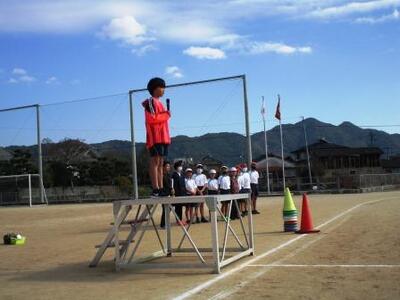 職員室バルコニーから「ガンバレ-!!」と応援すると「はーい!」と元気な返事が返ってきました。