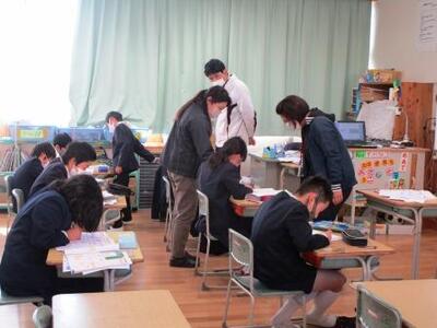 昨日午前、玉名教育事務所より所長はじめ4名の先生方に訪問いただき、全クラスの授業を参観いただきました。