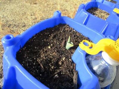 プランターをリヤカーに積みます。小学生のリヤカー、かわいいでしょ。