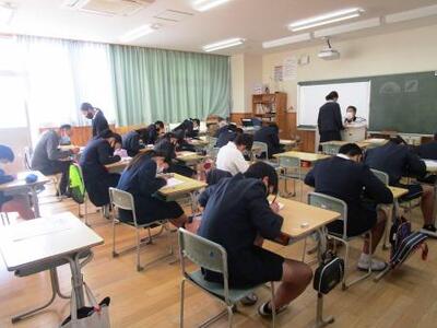 2校時は全学年が学力検査の国語の問題に取り組みました。初めての1年生もがんばっていました。
