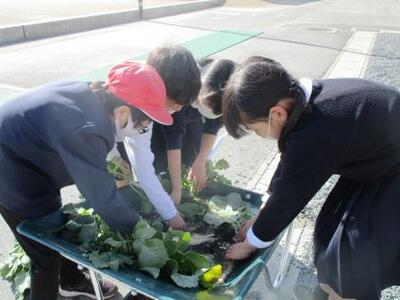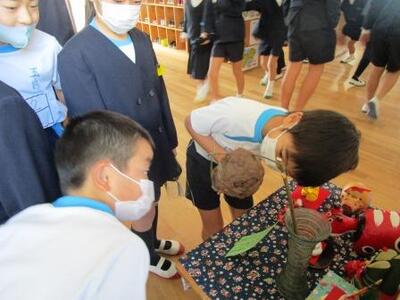 落ちたつぼみの片付けを6年生が手伝ってくれました。さすが!