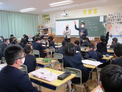 セス先生が初めて2年生教室に…自己紹介を聴いた後、質問したり英語で自己紹介したり、英語に楽しく親しんでいました。