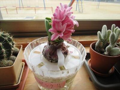 特別支援学級のヒアシンスさんの花が連休の間にこんなに大きく!