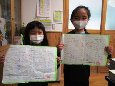 2年生は九九の暗誦の真っ最中!校内で上級生や先生方に「ちょっとお時間いただけますか?〇の段の下りを聞いてください。」と積極的にお願いしています。