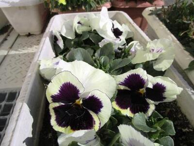 プランターのパンジーも寒さに負けず大きな花を咲かせて迎えてくれました。環境委員会のお世話でとても大輪に育っています。