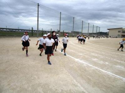 教育実習の松尾先生、金栗タイムで一緒に走ってくださっています。スピードが一定でしかも速い!