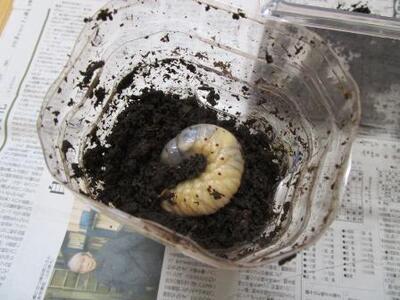 さくら学級で育てているカブトムシの幼虫がとても大きく育っています。土の中で餌ももらわないのに…命ってすごいですね。