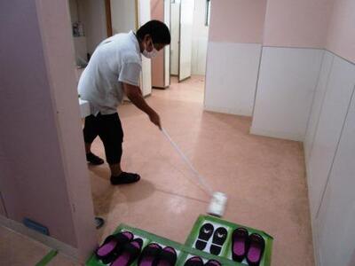 短縮日課では掃除の時間がとれないため、児童下校後、先生達が教室・廊下やトイレ等の掃除と消毒をしています